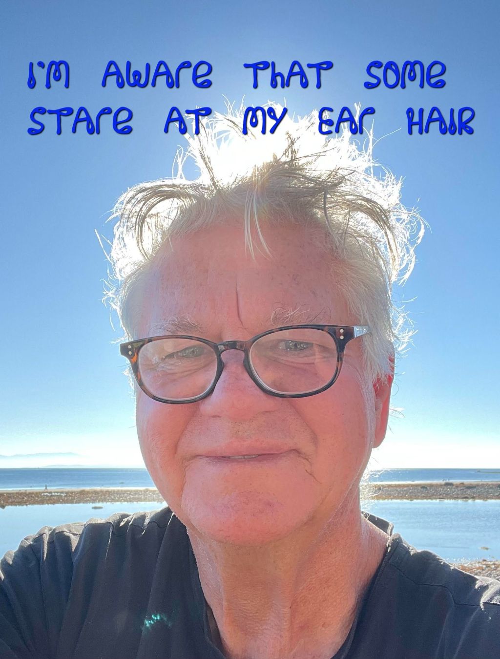 ‘Yes folks I’m aware that some stare at my (ear) hair. So now that I’ve shared this affair of the hair, I’m going to repair to my lair and use Nair, do you care?’